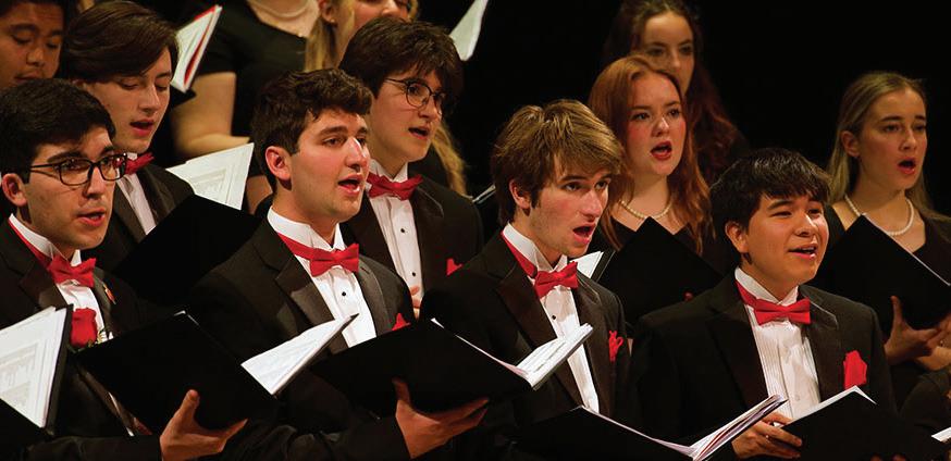 They perform a variety of music, from classical to popular, and from opera to musical theater. Members perform in mandatory performances throughout the year, including the Alumni and Family Weekend Concert, the Christmas Concert, the Spring Concert and the Pops Concert.