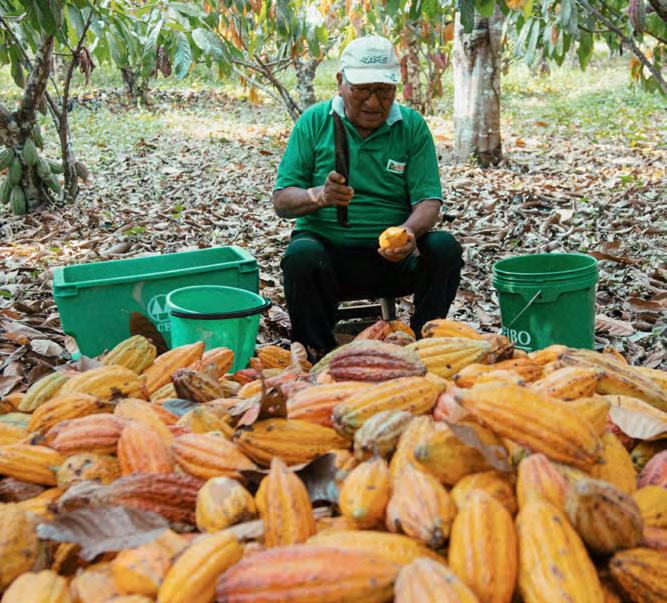 Seit ihrer Gründung im Jahr 2010 – damals noch mit weniger als 300 Mitgliedern –hat ABOCFA einen bemerkenswerten Weg zurückgelegt. Bereits zwei Jahre später setzte man den Schritt, sich FAIRTRADE-zertifizieren zu lassen. In der Kakaosaison 2022/23 gab es bereits eine Produktion von rund 1.300 Tonnen biologischem FAIRTRADE-Kakao. Aus der kleinen Bauerngemeinschaft ist eine relevante Größe am Kakaomarkt geworden. Im Gegensatz zu den meisten anderen FAIRTRADEKooperativen gelingt es ABOCFA, 80 Prozent der Kakaobohnen unter FAIRTRADE- und BioBedingungen zu verkaufen – der Durchschnitt liegt sonst bei gerade einmal einem Drittel. Das bringt zusätzliche Einnahmen, die die Lebensbedingungen der Mitglieder erheblich verbessern.