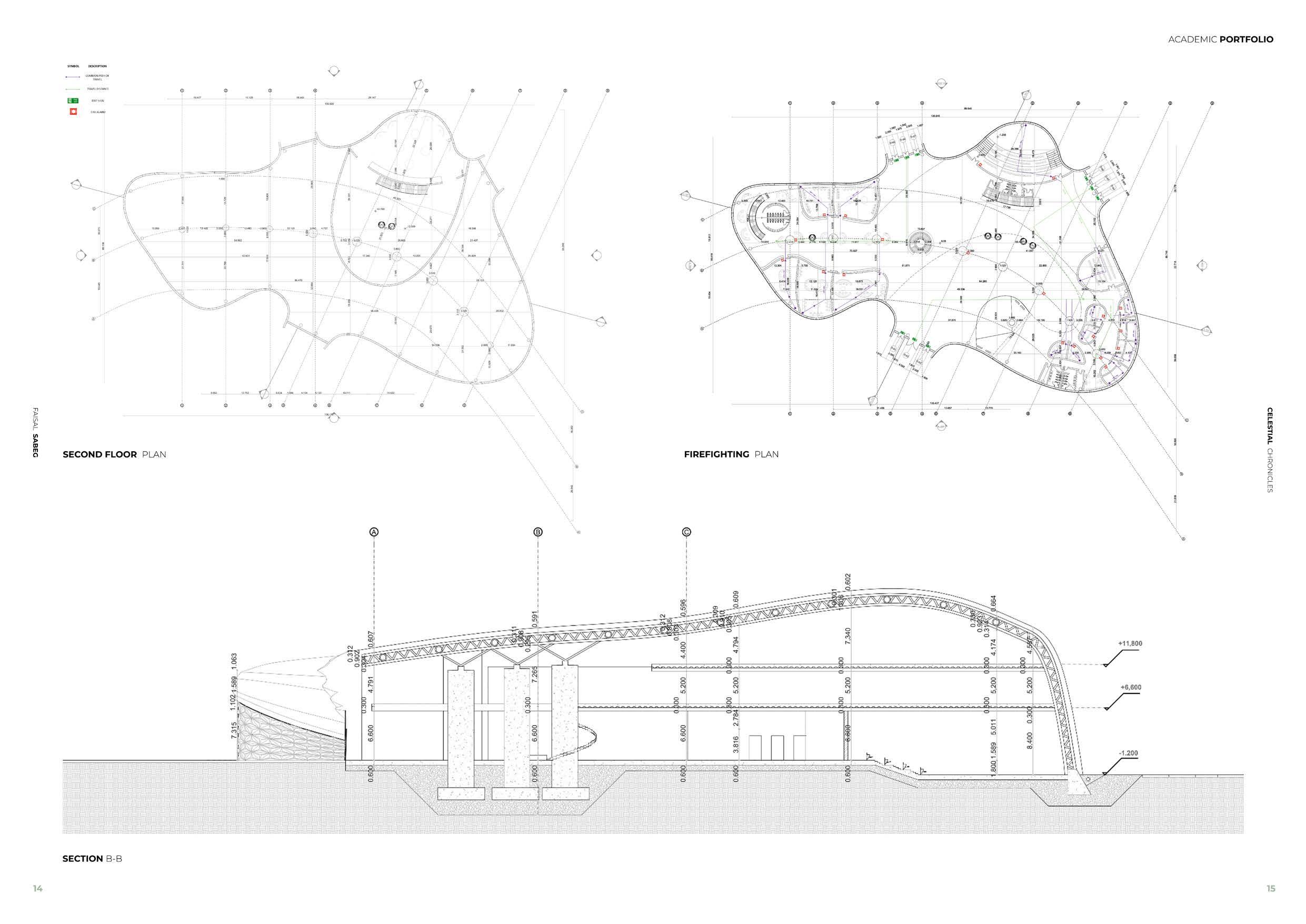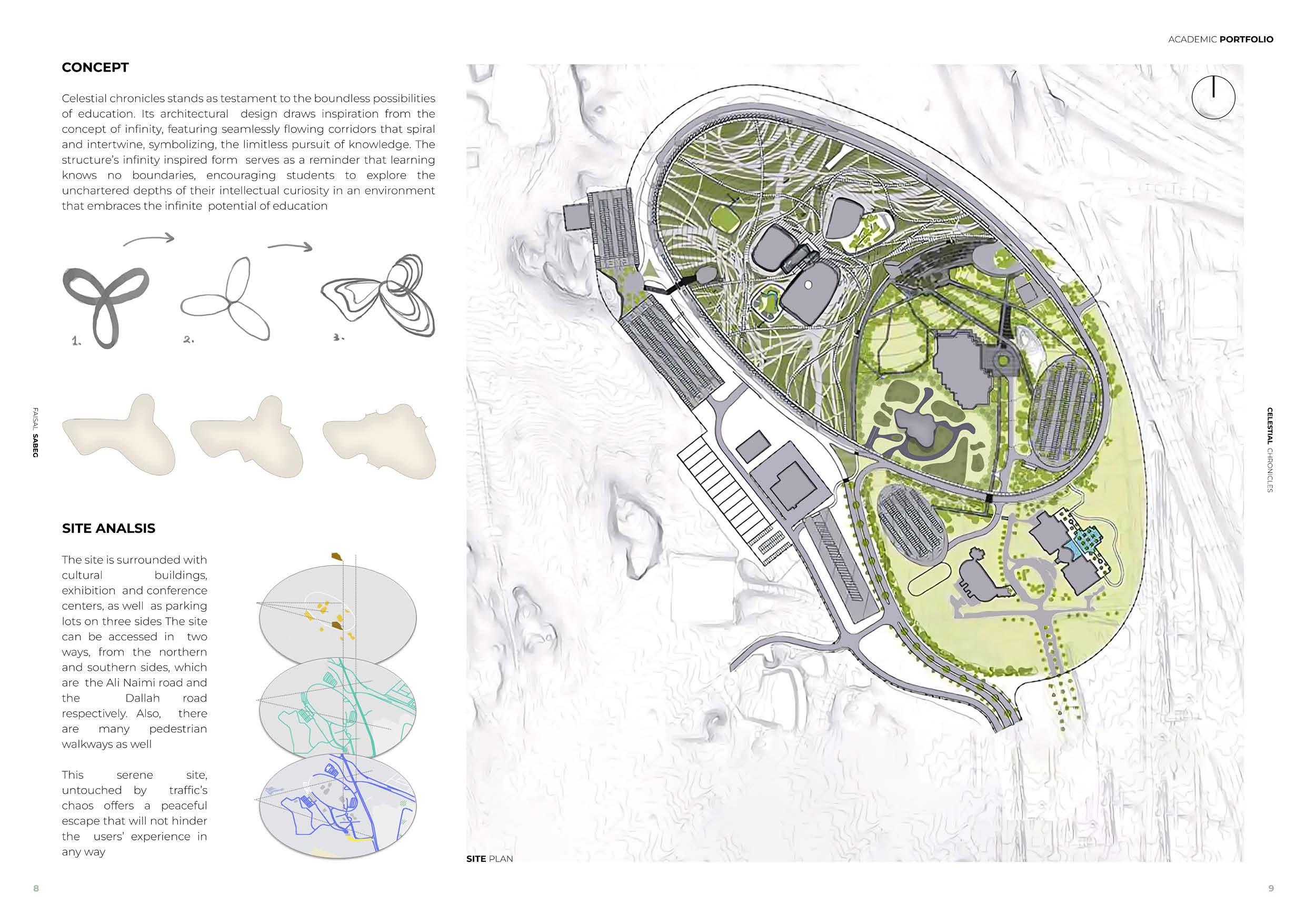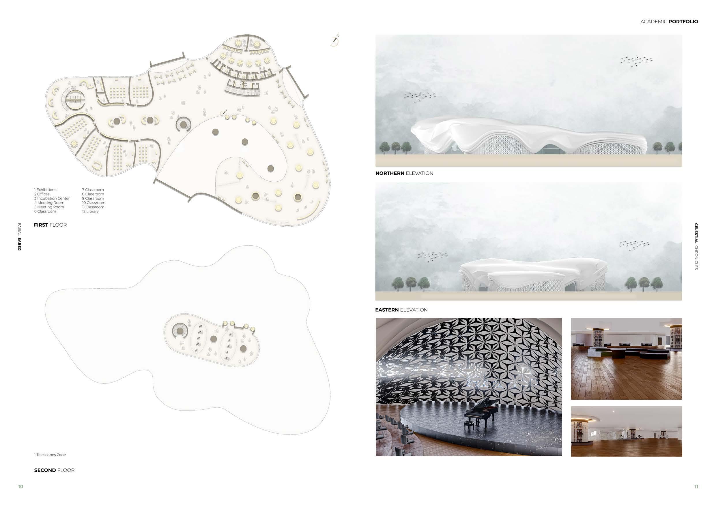 CELESTIAL CHRONICLES is an innovative space education center with a vision to create an immersive educational space that transcends traditional limitations. It seeks to ignite a profound connection with the cosmos while addressing critical issues in education. Among these issues are the lack of flexible learning spaces, limited opportunities for outdoor learning, and insufficient integration of technology. To tackle these challenges, the building plans to design zones that cater to diverse learning styles, seamlessly merge indoor and outdoor spaces, and integrate technology effectively.
