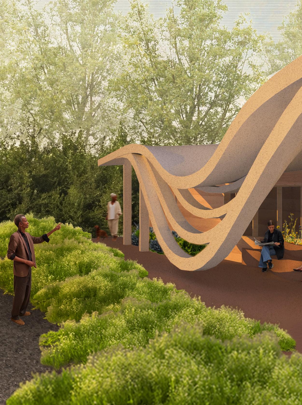 Undulations organize space through variation in height, derived from the Arboretum’s landscape, where elevation shapes movement and gathering. Taller volumes support quiet, reflective, and observatory use, while lower areas encourage collaboration, liveliness, and communication. These shifts draw movement into a central forum, establishing spatial congruence through form.