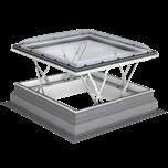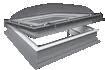 • Smoke ventilation flat roof window with a dome made of durable polycarbonate. The window is offered in two versions: