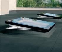Smoke and heat exhaust ventilation flat roof windows DSF, DSC smoke ventilation flat roof windows are used for extraction of smoke and heat emitted in a building during a fire.