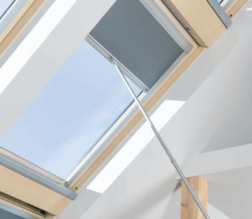 Per azionare finestre installate ad altezze fuori dalla portata di mano dell’utente, FAKRO offre una pratica e funzionale asta che consente di aprire e chiudere con facilità finestre, ma anche di movimentare le tende interne.
