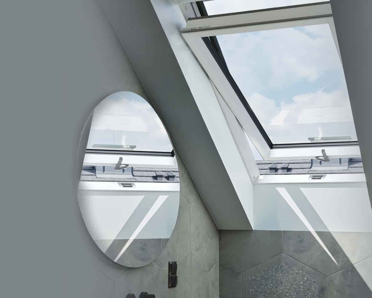 Oblíbená konstrukce střešních oken s panty umístěnými v polovině výšky okna. Komfortní ovládání pomocí dálkového ovladače nebo mobilní aplikace.
