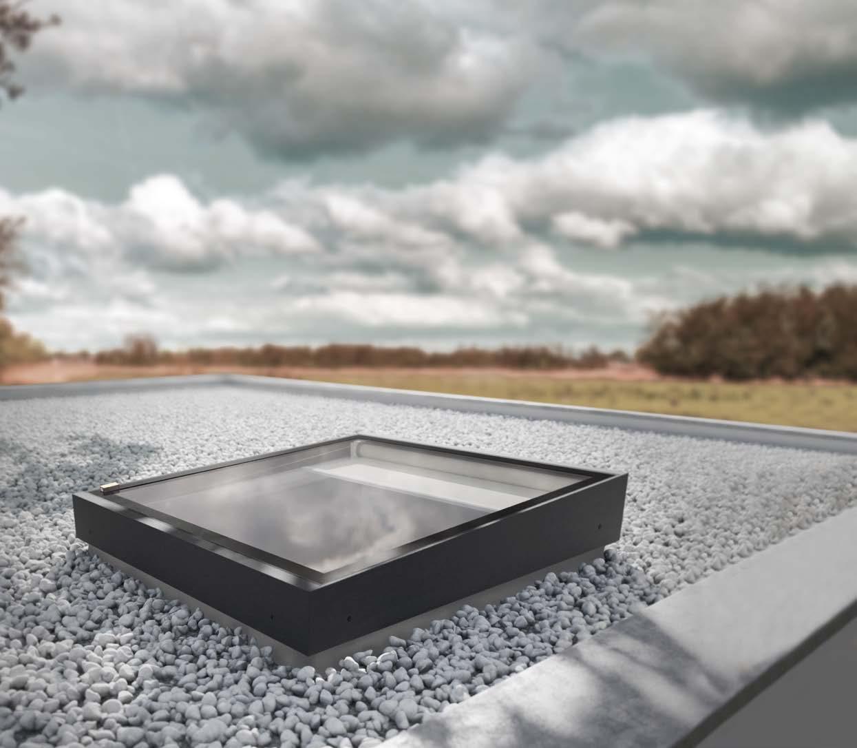 Okno má za úkol prosvětlit vnitřní prostory pod plochou střechou. Díky speciálně navrženým tvarům profilů křídel a rámů se okna do plochých střech charak-