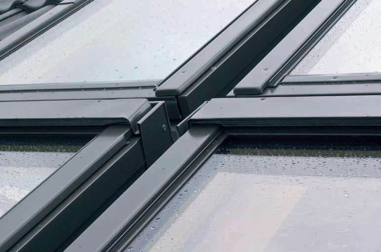 3 - La construcción universal de XRD ofrece la posibilidad de superponer un máximo de 2 marcos XRD de 15 cm. El borde inferior facilita la conexión con la membrana impermeabilizante del techo.
