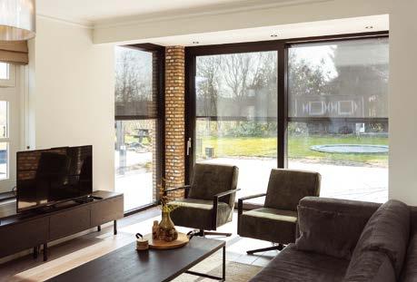 Die am Fassadenfenster eingesetzte und geschlossene Netzmarkise (VMZ Z-Wave, Solar, WiFi) schützt auch bei geöffnetem Fenster vor lästigen Insekten (unter Berücksichtigung der baulichen Gegebenheiten).