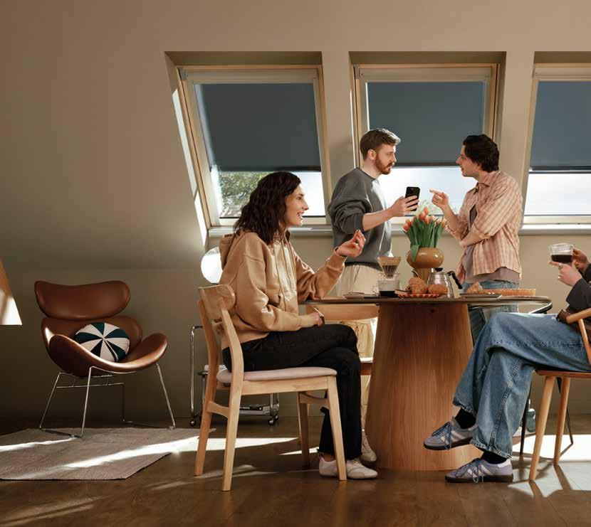 Внутрішні штори для дахових вікон не тільки прикрашають інтер’єр, але й забезпечують контроль освітлення, створюючи ідеальні умови для роботи та відпочинку.