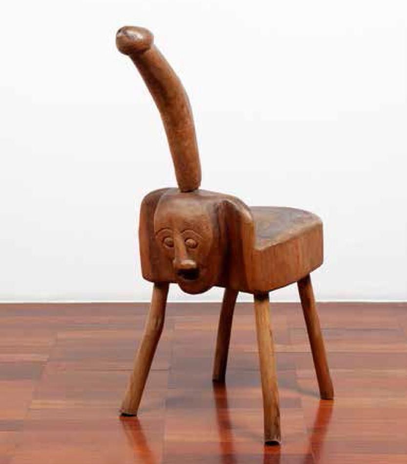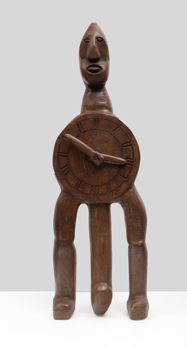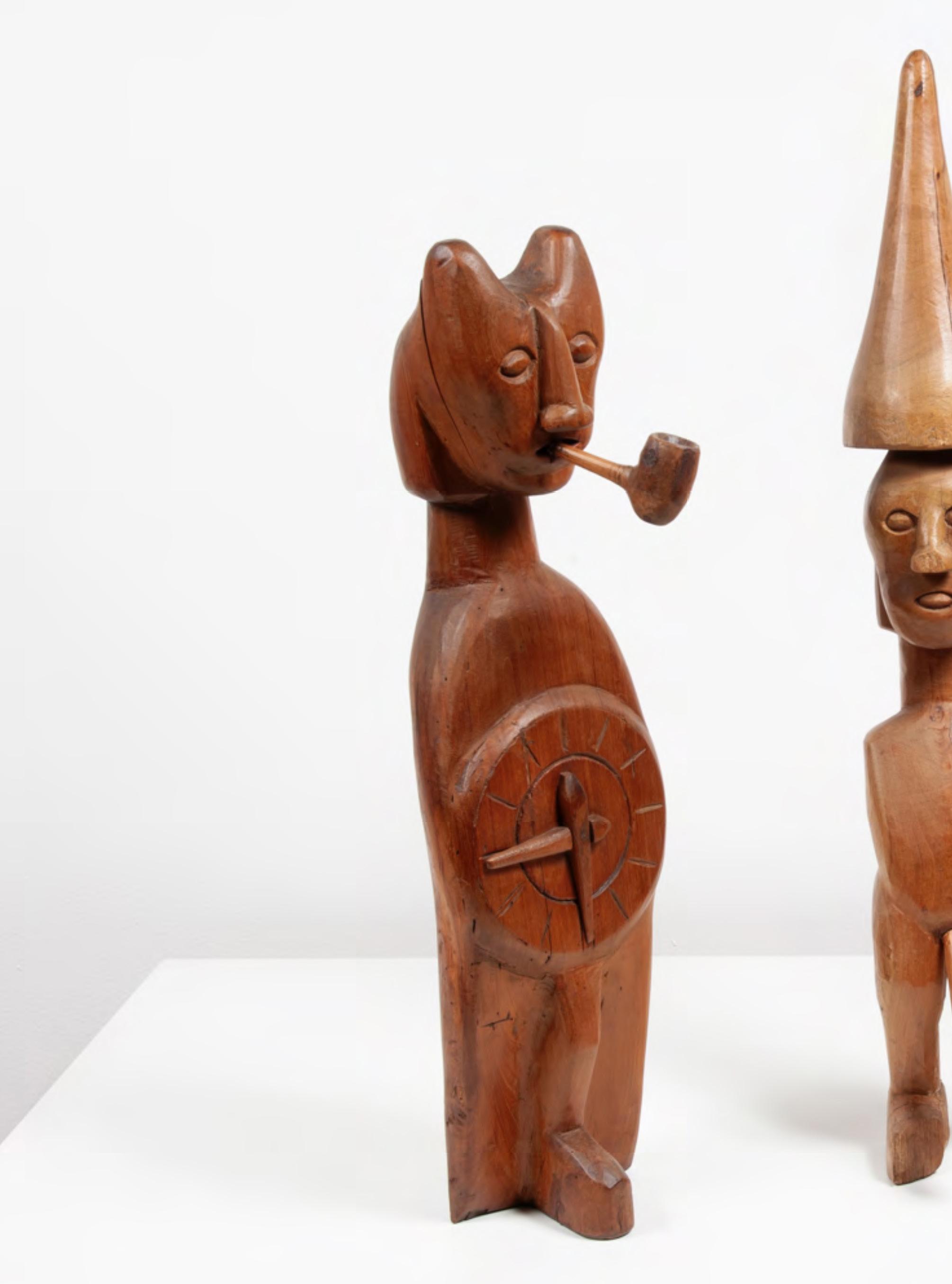 Acima, Relógio-Mulher e Relógio-Homem, e, abaixo, Sem Título (Cadeira), ambos em madeira, s.d.