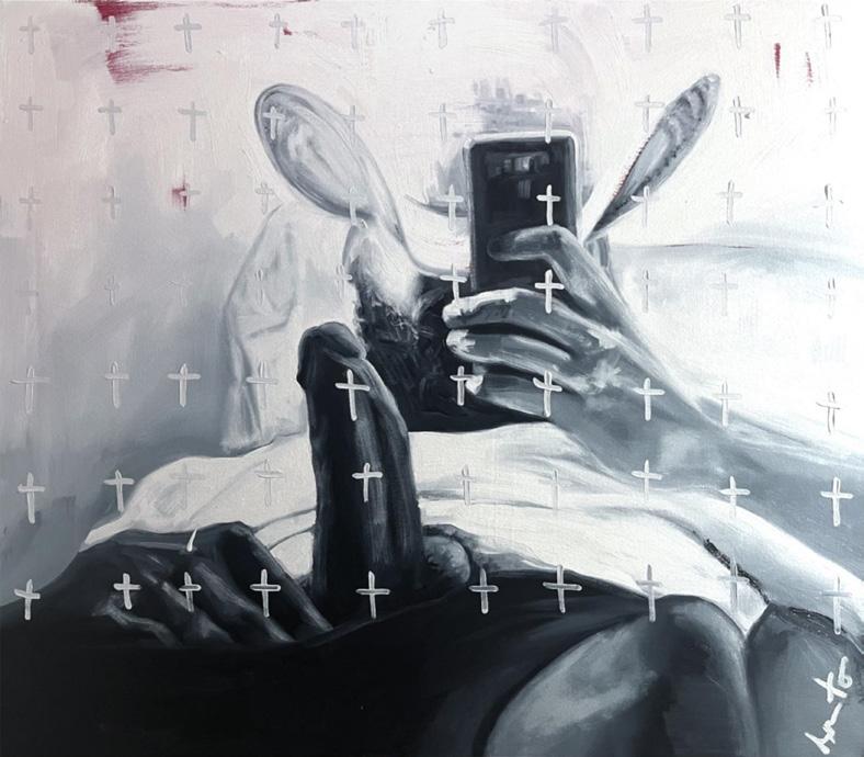 Cross Selfie 0001, óleo sobre tela, 2022.