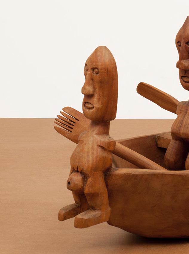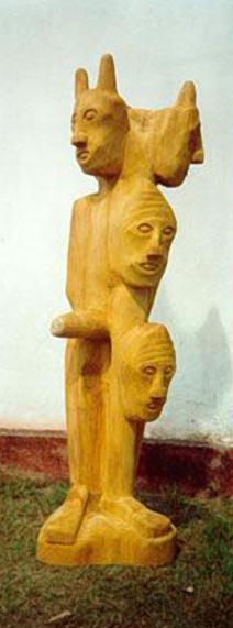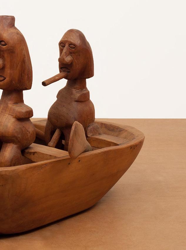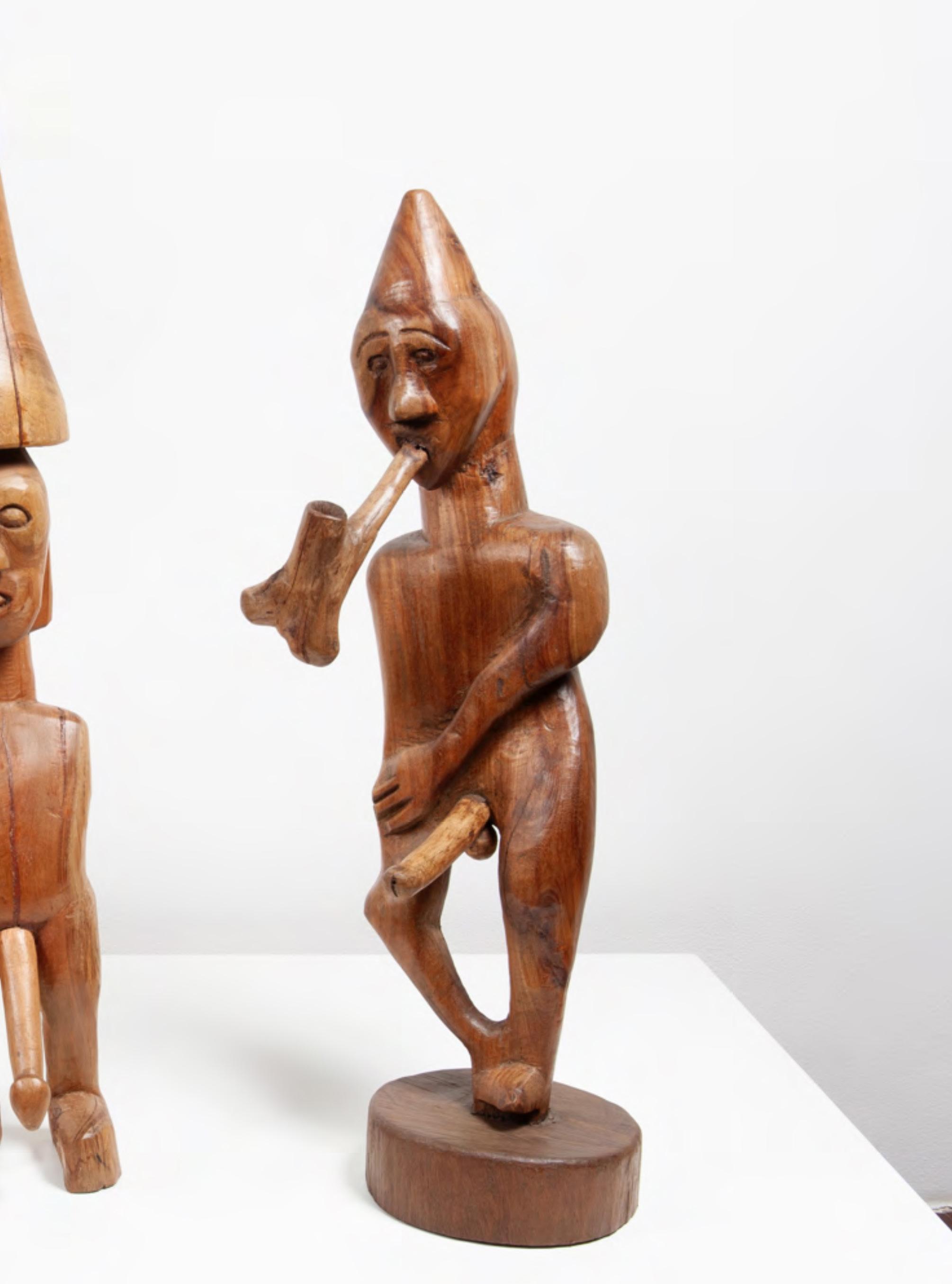 Ao lado, Sem Título (madeira, c. 1985). Acima, Família de Exus (madeira, 1996).