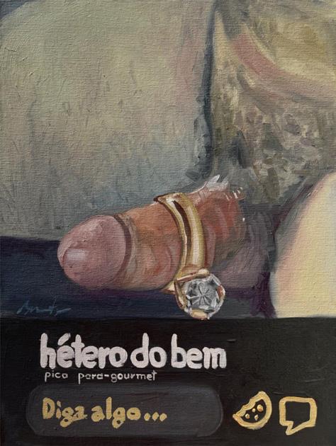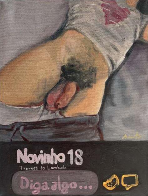 Óleos sobre tela da série A lista das putas astrais do Grindr: A obra de arte na era da sua reprodutibilidade técnica (2024); Dama do laquê (2024); Hétera de Dionísio (2024); Hétero do bem (2024); Jogador de bola (2024); Novinho 18 (2024); Transparente (2024); e Obsidian-Oblivian (2025).