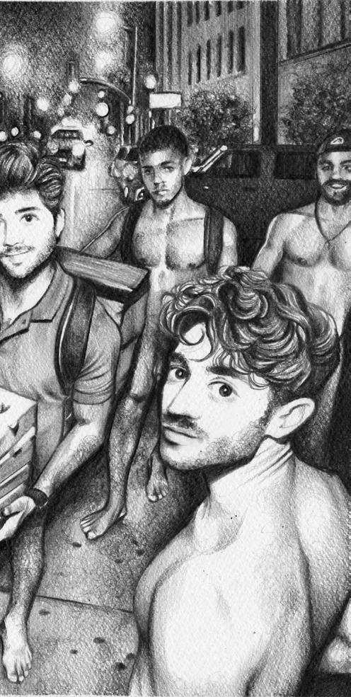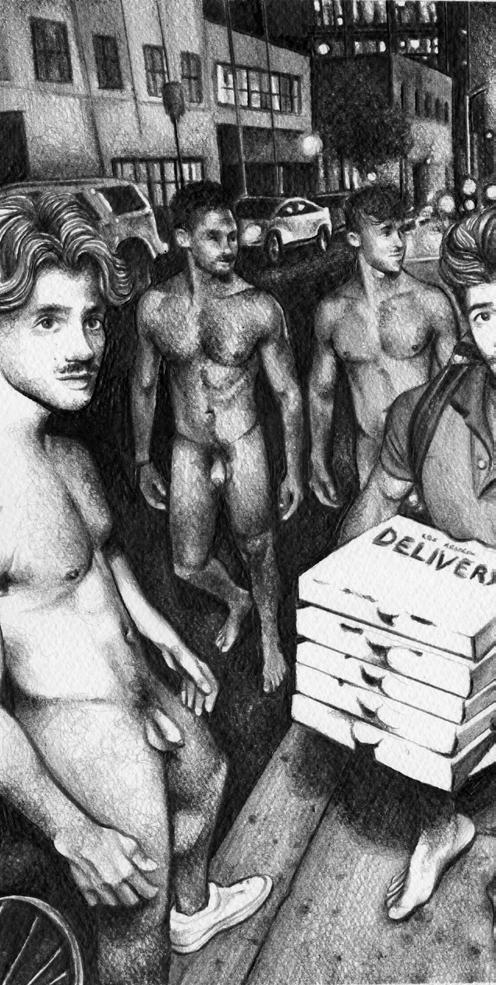 Milo Manara e Guido Crepax são bem conhecidos por seus trabalhos que frequentemente apresentam personagens femininas – geralmente nuas – em cenários comuns e surreais, até mesmo grotescos. A liberdade e a sensualidade retratadas por eles inspiraram o também italiano Francesco Brunetti a levar a mesma energia e expressividade para seus personagens masculinos em ilustrações a grafite e pinturas.