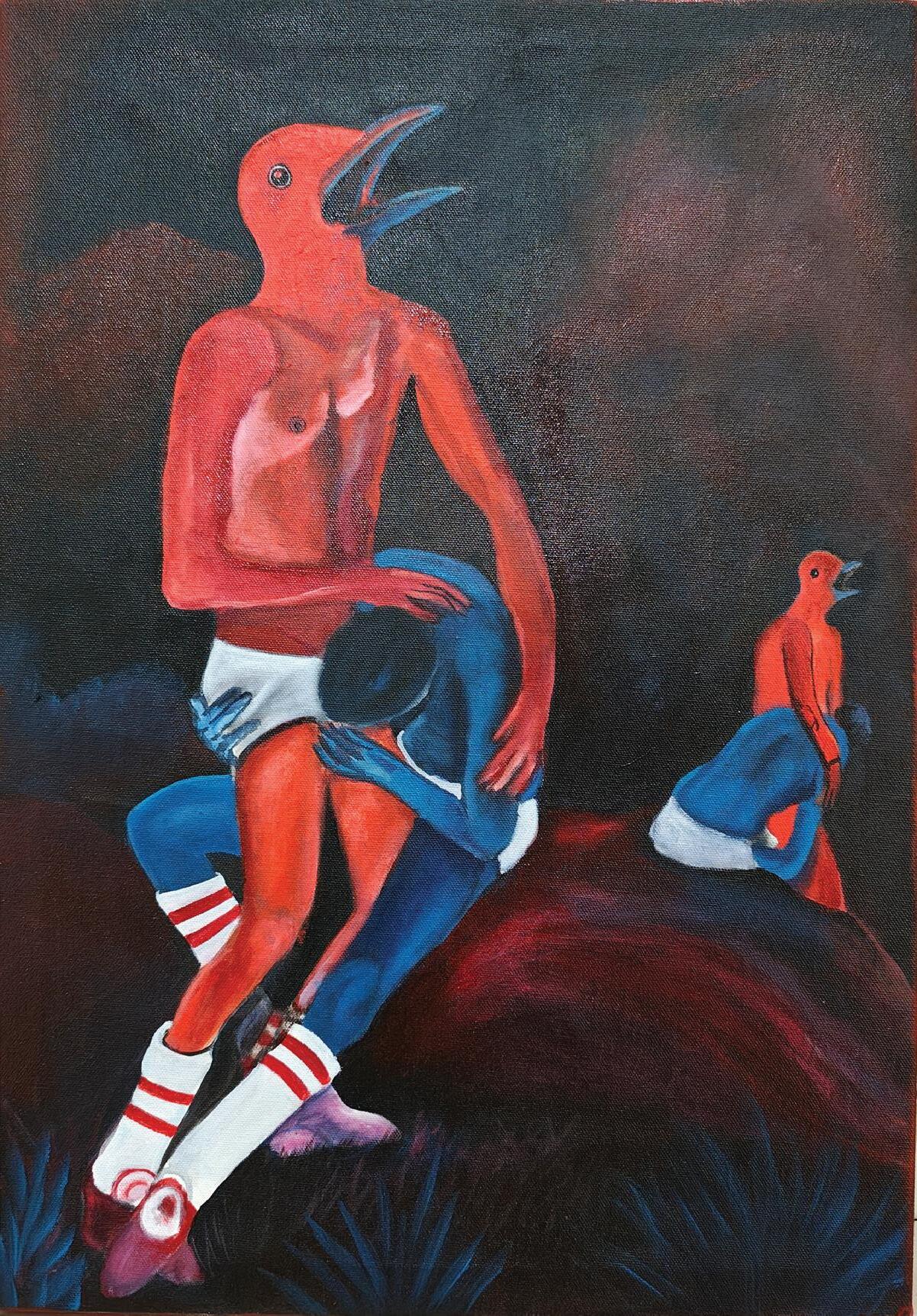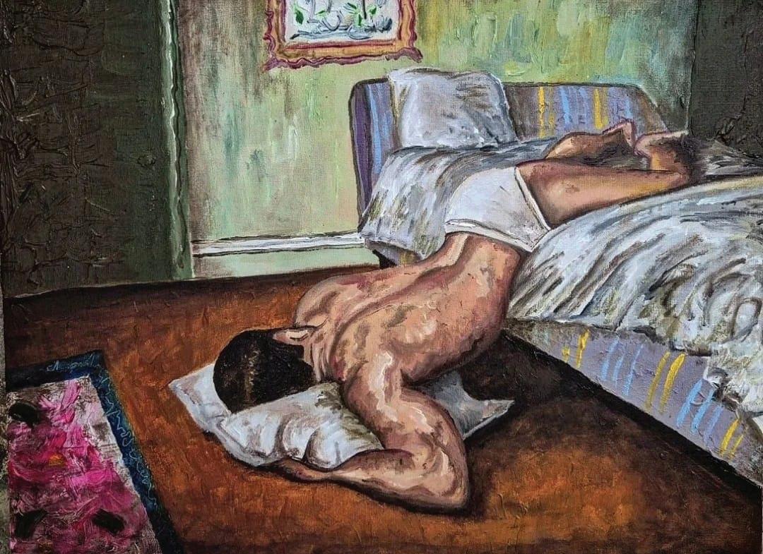 Um oratório para a Sauna Gay Satanista ou a última tentação (2024) acrílica sobre tela 118 x 85 cm