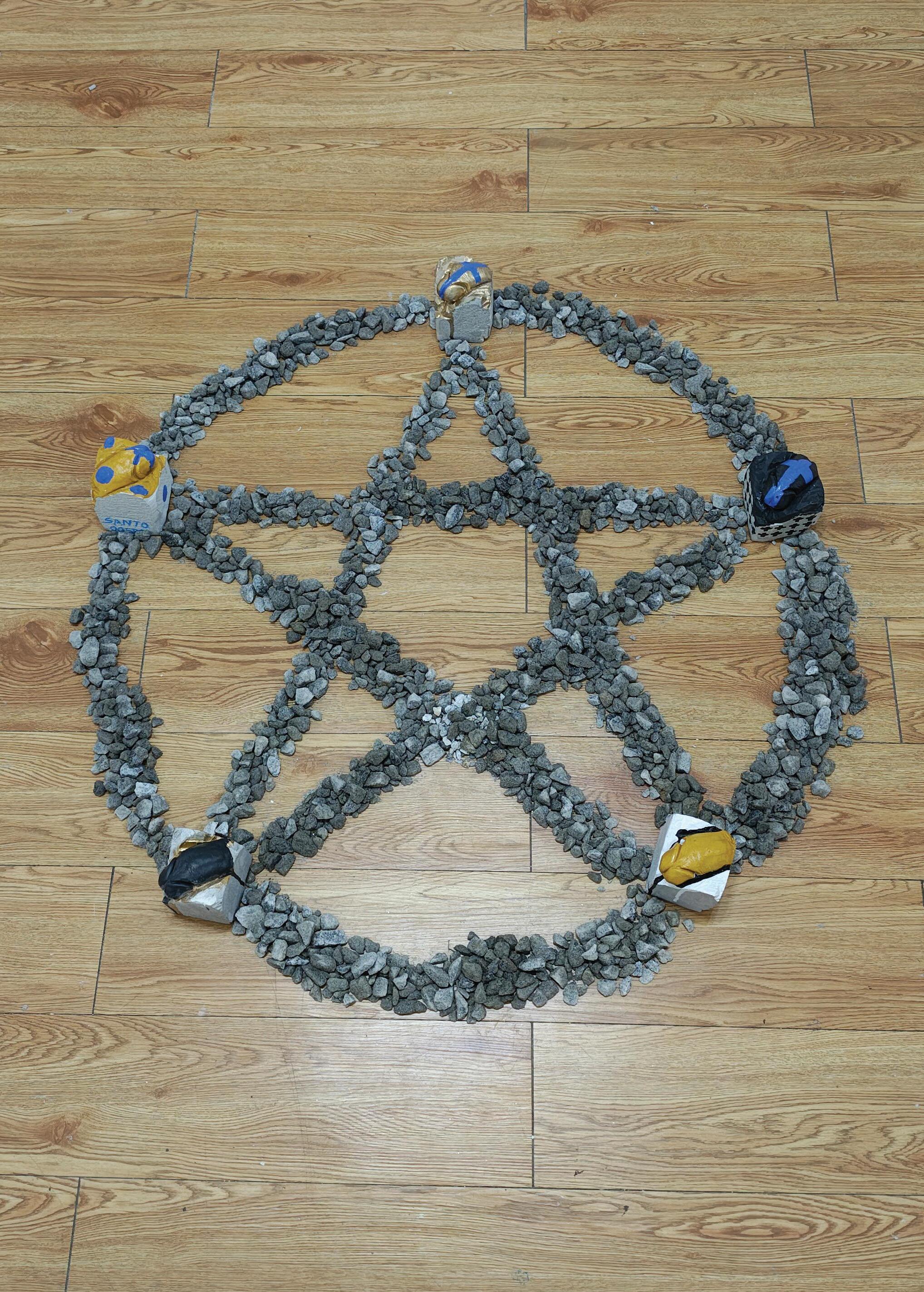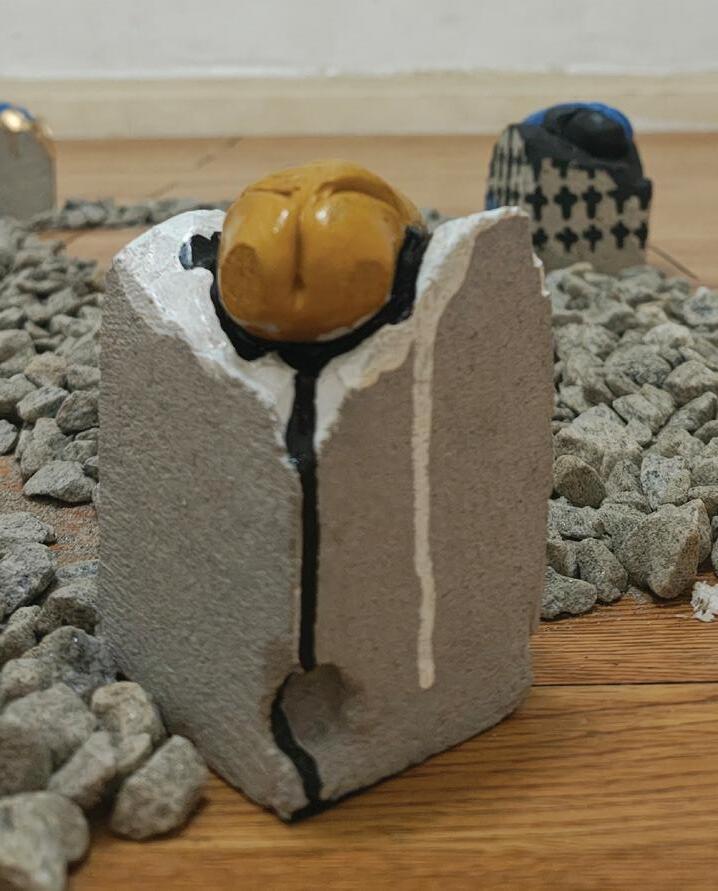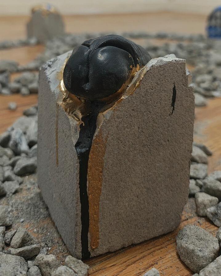 instalação com esculturas de concreto e pedras