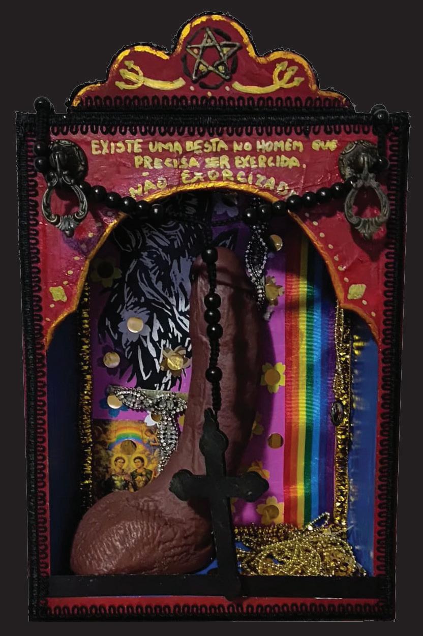 Com o acréscimo das palavras “Gay” e “Satanista”, evoca-se tudo aquilo que historicamente foi empurrado para fora dos regimes de pureza, moralidade e normalização dos corpos. Contudo, ser gay trata-se de uma experiência que não se reduz à oposição à norma. É um modo de existir e de desejar no mundo, atravessado por multiplicidades, diferenças internas, afetos, histórias e possibilidades de construção de subjetividade, que produz cultura, linguagem, formas de cuidado, parentesco, prazer e resistência. Já o satanismo configura-se como uma escolha simbólica, filosófica ou estética que opera, muitas vezes, justamente pela provocação, pela inversão de valores hegemônicos e pela recusa consciente de determinados sistemas morais e religiosos.