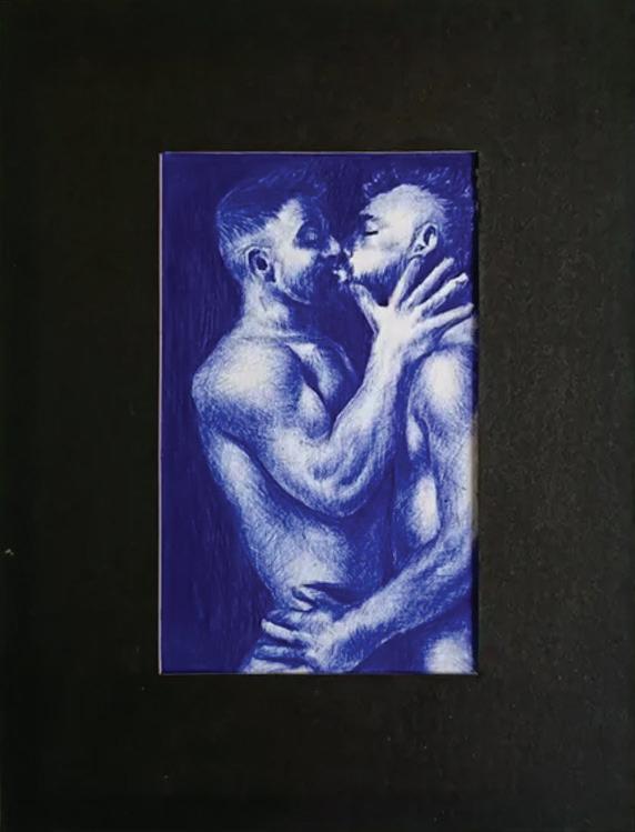 o beijo (2025) caneta esferográfica sobre papel 12 x 15 cm (moldura)