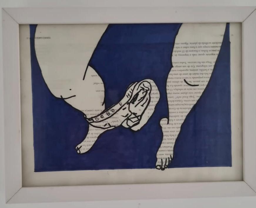 Com quantas palavras se faz um corpo (2021) caneta posca e caneta permanente sobre páginas de livro