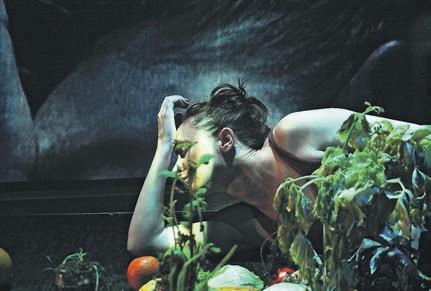 Beyond The Overflow Elisabeth Bakambamba Tambwe / Dig Up Productions Mit diesem Projekt setzt Elisabeth Bakambamba Tambwe ihre Reihe zu Roland Barthes‘ Fragmente einer Sprache der Liebe, in der der Autor die Gefühle der Liebe anhand von Sprachfiguren untersucht, fort. Das Kapitel „Lunettes noir“ veranschaulicht, wie Liebende manchmal den Tumult ihrer Leidenscha verbergen: Begierden und Schwierigkeiten, uneingestandene Exzesse. Odeon, Di 15.7., 22.00 deep dish Liquid Lo / Chris Haring Vier Gäste, ein üppig gedeckter Tisch – und Kameras, die jede Regung der Schlemmenden in verstörend schönen Nahaufnahmen festhalten. Was als genussvolles vegetarisches Mahl beginnt, steigert sich zur rauschha en Orgie aus überreifen Früchten, gärenden Sä en und enthemmten Körpern. Die Live-Performance aus dem Jahr 2013 mit Filmprojektion verwandelt sich in ein düster-sinnliches Vanitas-Bild unserer Überflussgesellscha – und wirkt heute aktueller denn je. Nest, Sa 12.7., Mo 14.7., 19.00