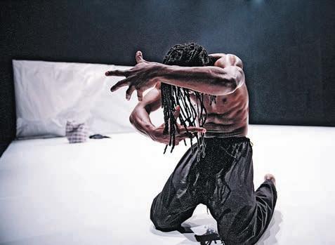 Impasse Mufutau Yusuf „Impasse“ bedeutet Sackgasse. Mufutau Yusuf hinterfragt die Erwartungshaltungen an Darstellungen von Rassismus und lehnt den Begriff „Publikum“ zugunsten von „Zeug:innen“ ab. In einem kra vollen Ritual-Due , begleitet von einer intensiven Klanglandscha von Tom Lane und Mick Donohoe, verwebt er Sichtbarkeit und Verborgenheit. Nest, Mo 4.8., 19.00, Mi 6.8., 21.00 Latente Martina De Dominicis Martina De Dominicis entwir mit ihrem Stück ein tänzerisches Bild des Mi elalters, nicht als finstere Vergangenheit, sondern als schwebender Sehnsuchtsraum jenseits linearer Zeit. Gemeinsam mit Magdalena Forster und Manuel Riegler (auch verantwortlich für den eindringlichen Sound) erkundet sie Rituale, Halbdunkel und verkörpertes Wissen. Mumok, Hofstallung, Fr 25.7., So 27.7., 19.00 Make it Count Ma eo Haitzmann In „Make it Count“ wird der Körper zum Metronom und das Springseil zum Instrument: Der Violinist und Performer Ma eo Haitzmann inszeniert gemeinsam mit Arthur Fussy (Modular Synthesizer) und Judith Schwarz (Schlagzeug) ein außergewöhnliches Konzert, in dem Bewegung und Klang untrennbar verschmelzen. Mikrofonierte Böden, Lu widerstand und körperlicher Einsatz erzeugen einen pulsierenden, körperlichen Soundtrack. Nest, Do 17.7., Sa 19.7., 21.00