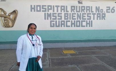 La primera viene desde el Hospital Rural No. 26 de Guachochi en Chihuahua, donde la Dra. Benilda Figueroa Viniegra labora desde hace 14 años. Ella es la primera médica rarámuri del estado de Chihuahua. Tiene dos publicaciones de investigación en la “Revista Médico Científica Facultad de Medicina del Siglo XXI de Ciencia y Arte”. Y, además, atiende con amor y cercanía a las personas que no hablan español y sólo pueden comunicarse a través de su lengua materna. Ella, después de formarse como doctora, decidió regresar a su comunidad para cuidar a su familia y a su pueblo.
