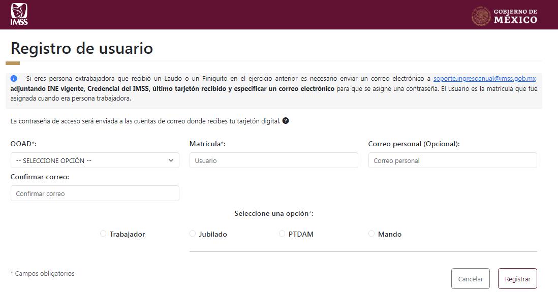 12. Enviar un correo electrónico a soporte.ingresoanual@imss.gob.mx adjuntando INE vigente, credencial del IMSS, último tarjetón de pago recibido y especificar un correo electrónico para que se le asigne una contraseña.