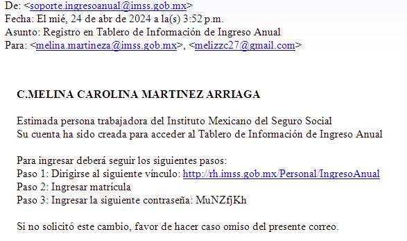 • De: <soporte.ingresoanual@imss.gob.mx>