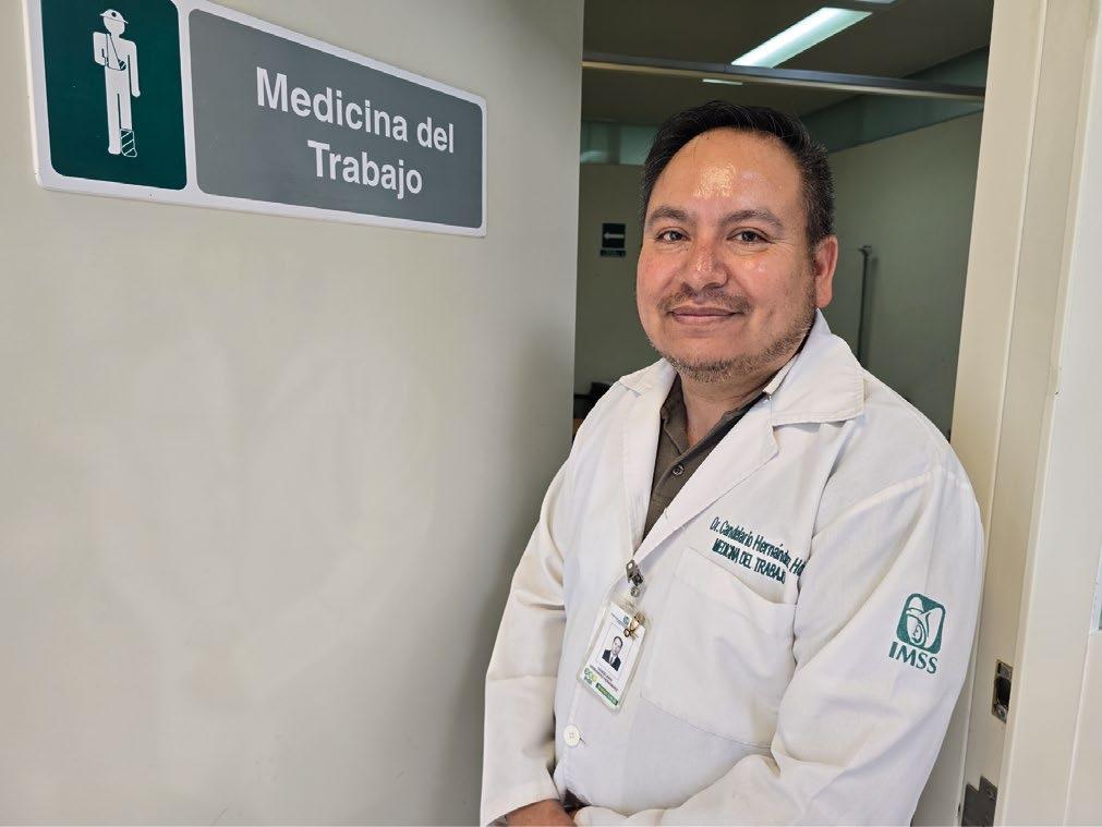Candelario Hernández Hernández es médico no familiar, especialista en Salud en el Trabajo, adscrito a la UMF No. 89 del IMSS en Saltillo, Coahuila. Con 19 años de servicio, su labor es clave al calificar y reconocer enfermedades y accidentes de trabajo y trayecto, evaluar secuelas derivadas de riesgos de trabajo y dictaminar estados de invalidez conforme a criterios médicos y normativos.