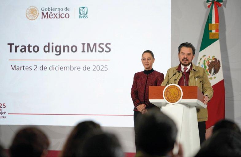 Acompañó a la Presidenta Claudia Sheinbaum a la celebración de “Siete años de Transformación”, en el Zócalo de la Ciudad de México. Encabezaron la 116 Asamblea General Ordinaria del IMSS en Puebla, donde inauguraron el Hospital General Regional (HGR) No. 36, recién nombrado “Carmen Serdán Alatriste”, y supervisaron en Ciudad Juárez, Chihuahua, el Hospital General Regional (HGR) No. 2 y los avances en la construcción del primer Centro de Educación y Cuidado Infantil (CECI). Visitó Michoacán para fortalecer el Plan Michoacán por la Paz y Justicia, donde recorrió el Hospital General de Zona (HGZ) No. 86 en Uruapan y la construcción de una Unidad de Medicina Familiar (UMF) en Nuevo San Juan Parangaricutiro. Asistió a la presentación de la Estrategia Nacional de Integración de los Protocolos Nacionales de Atención Médica (PRONAM) con el secretario de Salud, doctor David Kershenobich y el equipo del Sector Salud. Estuvo presente en la entrega de los Premios a la Competitividad 2025, a UMAE y Hospitales del Instituto reconocidas por su calidad. E instaló el Comité de Trato Digno de Nivel Central, al lado del secretario general, el doctor Rafael Olivos, del Sindicato Nacional de Trabajadores del Seguro Social (SNTSS), estrategia que fortalece la calidad y la calidez en la atención.