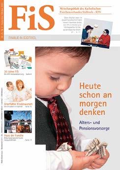 sich als modernes, farbiges Medium, das sehr ansprechend gestaltet ist. Man nimmt die FiS gerne zur Hand und erfreut sich an den attraktiv aufbereiteten Beiträgen, die die ganze Palette der Probleme der Familien in Südtirol und die reiche Tätigkeit des Verbandes widerspiegeln.