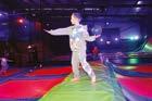The kids spent a good 1.5 hours bouncing around. The trampolines were a hit as always, but it was the fun areas that really held their attention. They enjoyed duelling on a balance beam, reminiscent of the 90’s ‘Gladiator’ TV show; the eldest was knocking the littlest off far too quickly for his liking. The monkey bars and bridges that hung across the soft bricks had my eldest leaping up, trying to grab hold and not slip off (difficult to do after lots of bouncing). They also took turns on the basketball hoop and played dodge-ball with each other, even letting their dad throw balls at them from the side.