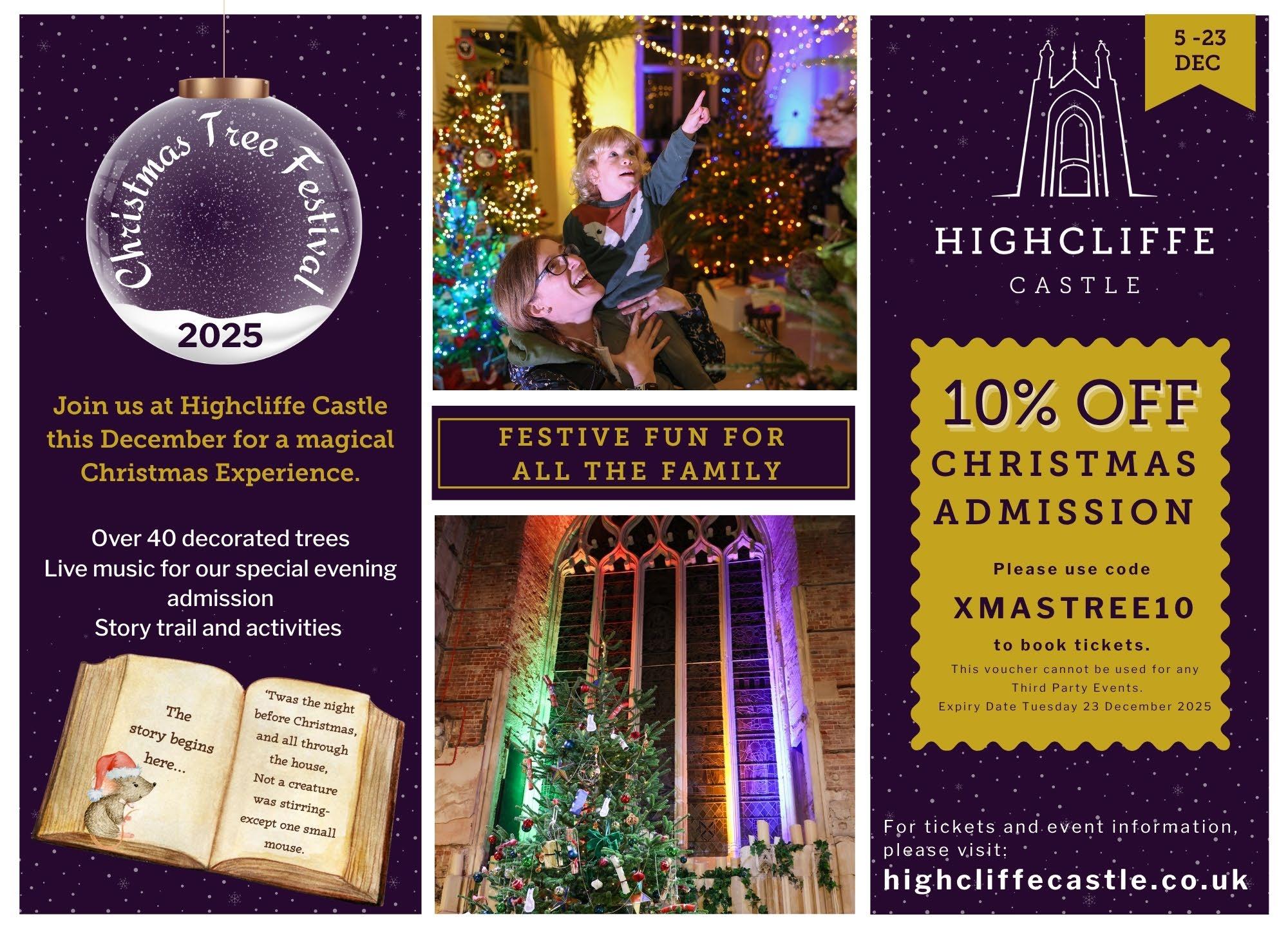 Forty decorated trees will be displayed throughout the castle and families can enjoy a delightful T’was the Night Before Christmas Festive Story Trail, incorporating the trees contributed by local businesses, charities and individuals and follow the journey of Highcliffe’s Christmas mouse to help him get the castle ready for Christmas. Get 10% of admission by quoting XMASTREE10 until 23 December. There will also be special evening admission to the Christmas Tree Festival between 5pm and 8pm on selected dates and families can explore the Festival accompanied by live music and refreshments available from the Castle Bar.