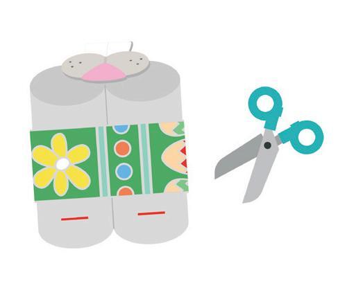 Insertthebunnyeartabsinto theslits.Foldthetabstowards youandtapetotheinsideof thetube.