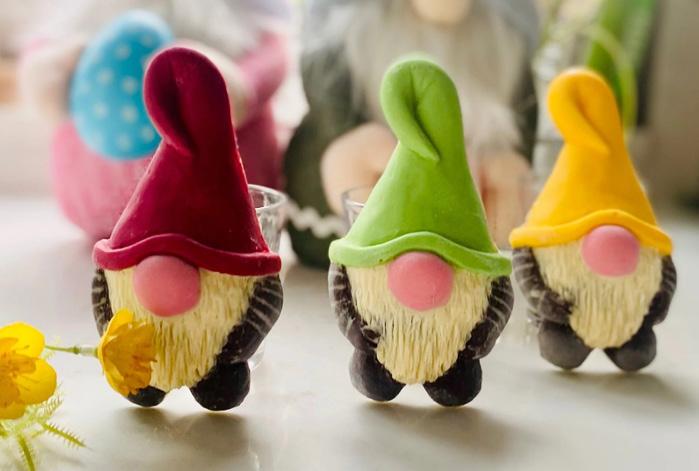 Colourful characters made of milk, white and dark Belgian chocolate.