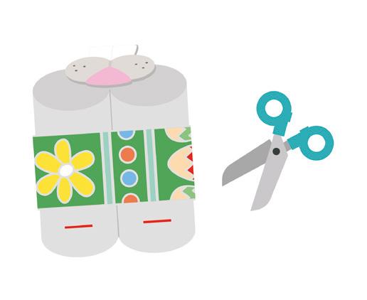 Insert the bunny ear tabs into the slits. Fold the tabs towards you and tape to the inside of the tube.