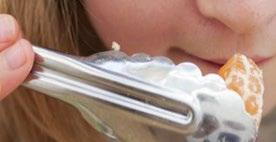 Many children are reluctant to TASTE new foods. Suggest they take a small ‘snake taste’ by putting their tongue quickly on the food. How do the inside and outside compare? Salty, sugary, sour or bitter? They can take a bigger, longer lick, if they want.