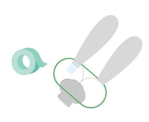 Insertthebunnyeartabsinto theslits.Foldthetabstowards youandtapetotheinsideof thetube.