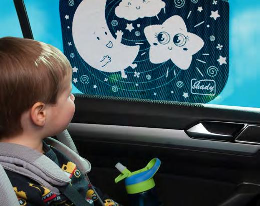 The new car sunshade from Shady® is the only car sunshade that allows you to wind down your car window. The sunshade blocks nearly all harmful UV rays and sticks firmly to the glass of the window. It’s perfect for any age and if you have a newborn, it has been specifically developed to nurture and stimulate vision and the optic nerves by incorporating high contrast, black-and-white, fun images whilst providing protection from sunlight.