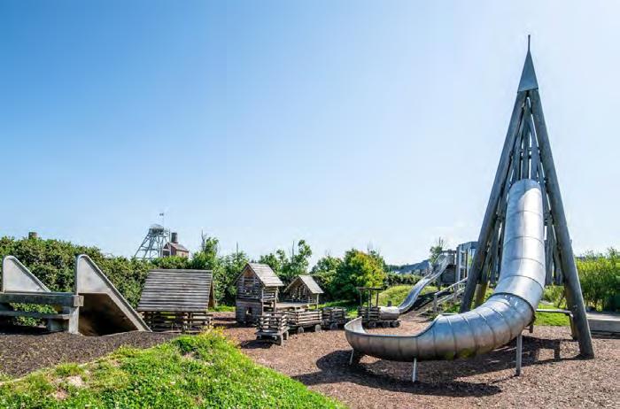 Extensive adventure playground, water play, large sand play, climbing tower and more.