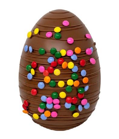 Chocolate oat milk egg with salted caramel and chocolate buttons.