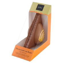 Chocolate oat milk egg with salted caramel and chocolate buttons.