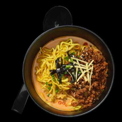 Tantanmen Noodle Soup mit No Minced Meat, Sesampaste, Nori, Ingwer, Frühlingszwiebeln und Chiliöl 25.5