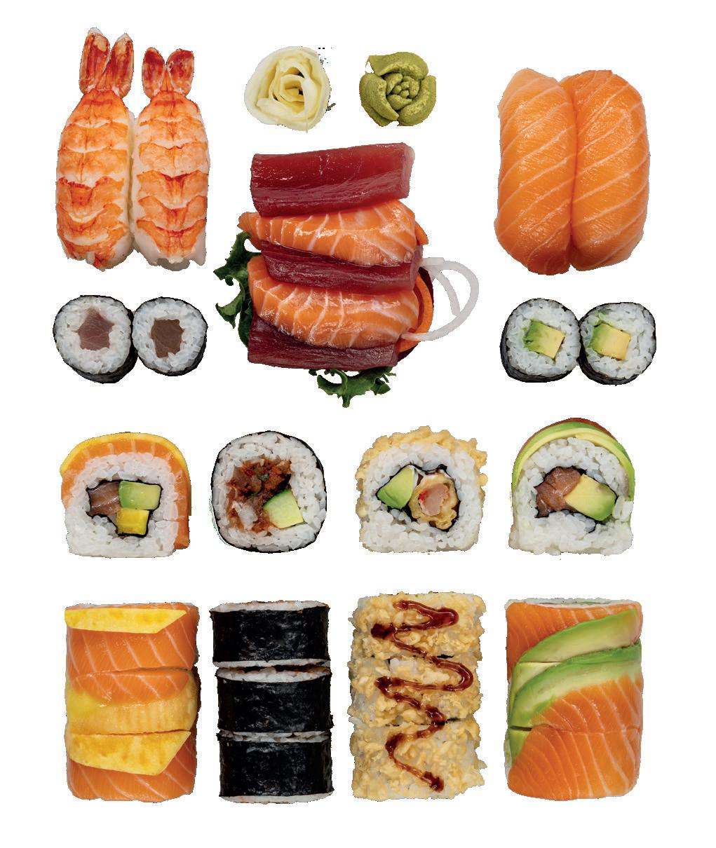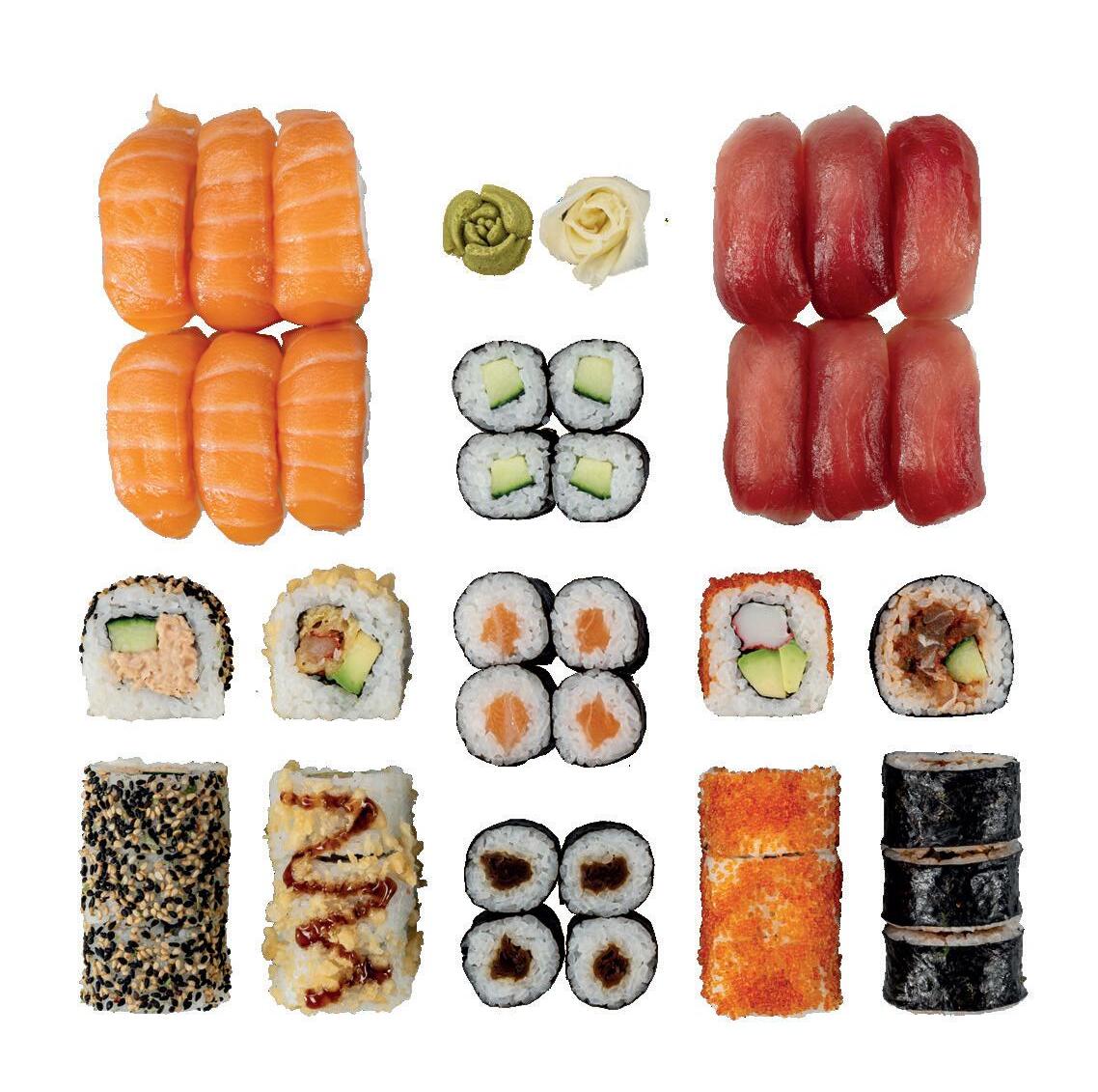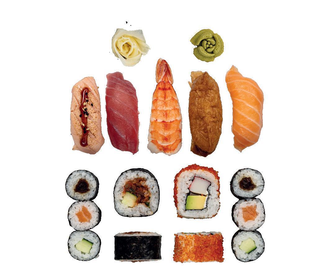 Ebi, Nigiri Shake, Nigiri Inari, California Roll, Futomaki Spicy Tuna, Makis