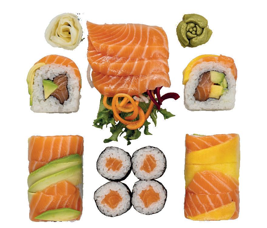 Premium Plate for one - Nigiri Maguro, Nigiri Shake, Rainbow Lachs, Tatar & Crunch, Kappa Maki, Avos Maki, Tuna Sashimi