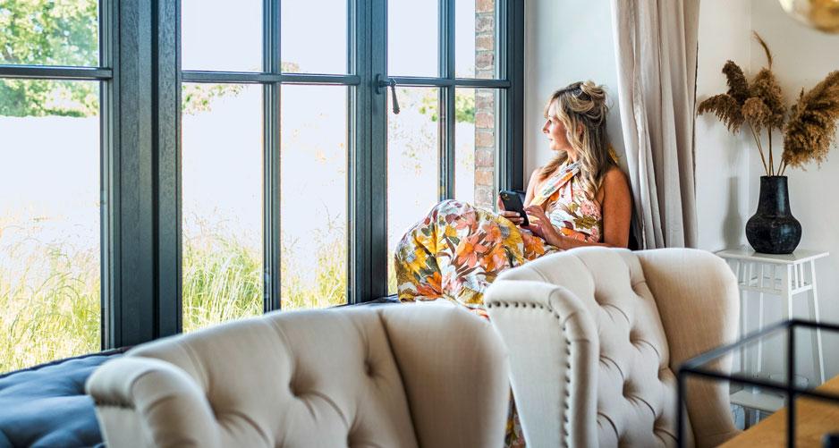 Palmen an der Wand, Olivenbäume auf der Terrasse und pinke Sonnenuntergänge über dem Feld – was nach Urlaub klingt, ist für Anne Christine Goerlich Alltag. Gemeinsam mit ihrem Mann Frank hat sie einen alten Industriehühnerstall saniert und ein Wohlfühlparadies geschaffen.