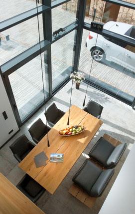 Ein bisschen wie im Cabrio: Die Sonne scheint, der Wind weht, die Musik läuft – und auf Knopfdruck öffnet sich das Dach. Einziger Unterschied? Wir sitzen nicht im Auto, sondern im Freien auf unserer Terrasse oder mitten im heimischen Grün. Dieses Wohlbefinden verdanken wir unter anderem modernen Terrassendächern, mit denen sich ganz nach Wunsch ein multifunktionaler Außenbereich schaffen lässt: egal, ob Fitnessstudio, OutdoorKüche oder Yogaraum. Mit einer Terrassenüberdachung zaubern wir – fast ganzjährig – eine Verlängerung zum eigentlichen Wohnraum: Hier wird entspannt, gespielt, gearbeitet oder gegessen. Die angebauten oder freistehenden Konstruktionen bestehen in der Regel aus filigranen Gestellen, häufig mit Lamellen, Glas oder Tuch für das Dach. Für typische Terrassenmomente lassen sich Seiten und Dächer oftmals komplett öffnen. Wenn Regen oder Kälte aufkommen, schließt sich das Ganze schnell wieder zum geschlossenen Raum und Sie können die Wetterspielchen getrost im „Freien“ aussitzen. Farbige LED-Beleuchtung, Dekorleisten, automatisierter Sonnenschutz oder integrierte Heizstrahler bieten Spielraum für viele individuelle BauherrenWünsche. Gleiches gilt übrigens für die neuen Markisenmodelle. Auch sie punkten mit smarten Details und zauberhaften Lichtspielen. Vor allem abends in der Dämmerung oder bei Nacht kreieren die Lichtelemente einzigartige Szenen. Dass die Freifläche