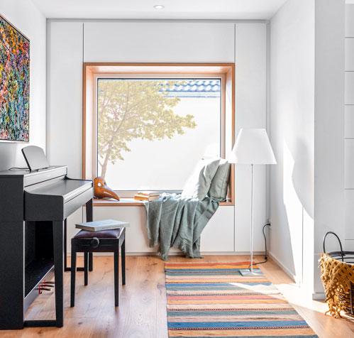 Point of View: Da die neuen Wände die alten Außenmauern umschließen, sind im ganzen Haus 60 Zentimeter tiefe Fensterbänke entstanden. Der perfekte Platz zum aus dem Fenster gucken.