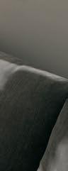 Im ganzen Haus herrschen Beige- und Grautöne. Weiche Texturen, wie das samtene Bett oder die Cordcouch, sorgen für Gemütlichkeit.