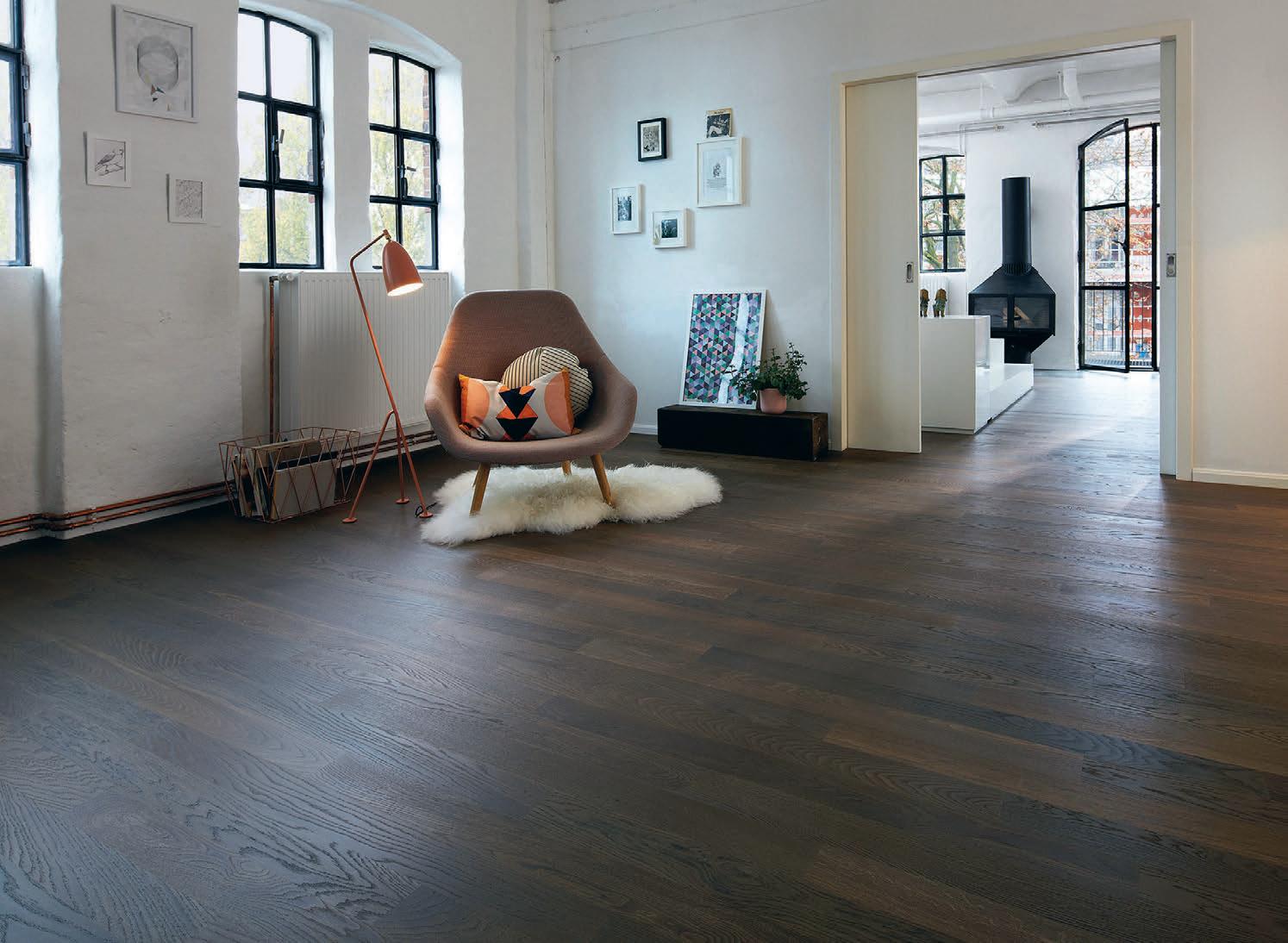 Einen Nachteil haben Doppelhäuser gegenüber dem Einfamilienhaus: Fenster können nur an drei Außenwänden angebracht werden. Bruders war wichtig, trotzdem viel Licht in die Wohnräume zu holen. Dass das gelungen ist, wird schon beim Betreten der Wohnung klar: Der Blick fällt durch den Flur über den Wohnbereich und hinaus in den Garten. Eine Glas- und tahlt r im oft- til trennt den aus ur in zwei Bereiche und