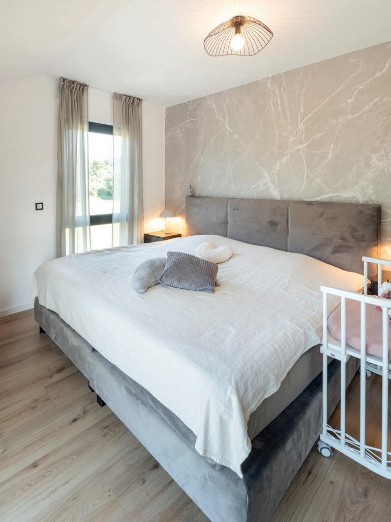 Sie waren gerade frisch eingezogen, da platze dem Nachbar der Betonschlauch. Der Inhalt traf Swetlanas Fassade, die Hebeschiebetür, die Fenster und Fensterbänke, die affstores, das aster und sogar die Außeneinheit der Luftwärmepumpe. „Alles war mit Beton bes renkelt , erinnert sich die In uencerin. Allein dieser Schaden kostete 70.000 Euro. Die nächste Hürde ließ sich nicht lange bitten. Nach nicht einmal zwei Jahren musste das Bauherrenpaar das Haus kernsanieren. Sie wollten eine Fußleiste austauschen, die sich verbogen hatte. In dem Moment bemerkten sie, dass die Wand feucht war. „Alex konnte die Tapete mit einer Bewegung abziehen.“ Mit jedem Stück Tapete, das